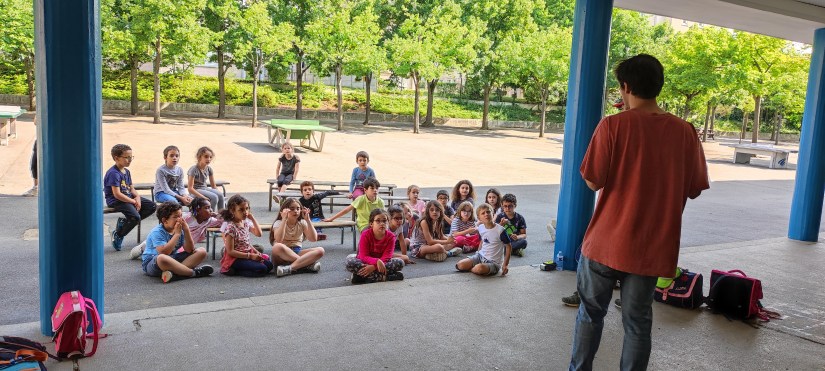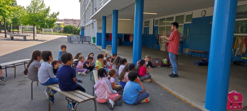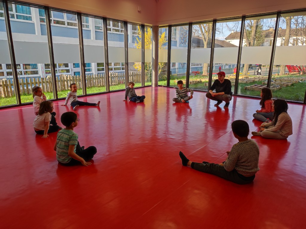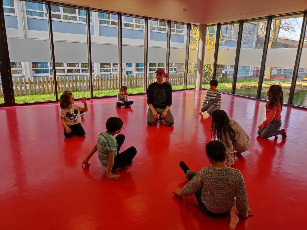 Animé par Geoffrey de la compagnie Ligne2Mire, cet atelier emporte un grand succès avec les CP et CE1.