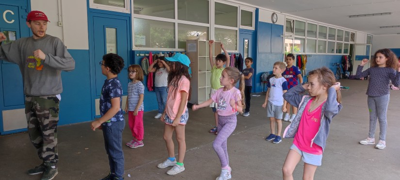 En fin d’année, les enfants des groupes de CP et CE1 de Théâtre et Hip hop se sont réunis pour faire une représentation commune devant les familles des enfants. Voici un aperçu des répétitions :
