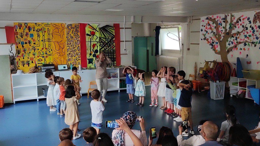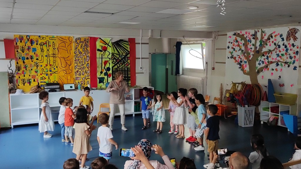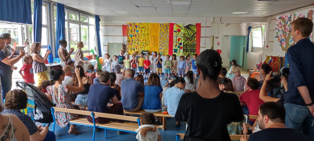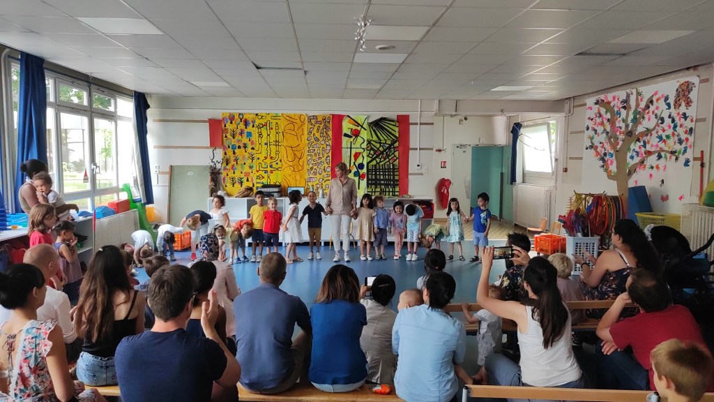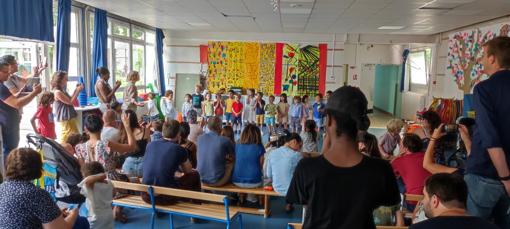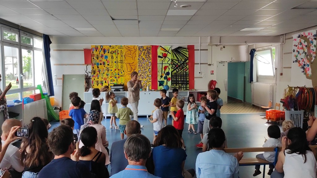 A la fin de l’année, les deux groupes d’éveil musical se sont retrouvés le temps d’une séance pour chanter devant leurs familles. Un super concert ! Les familles ont pu participer le temps d’un instant en faisant de la musique avec des Kapla.