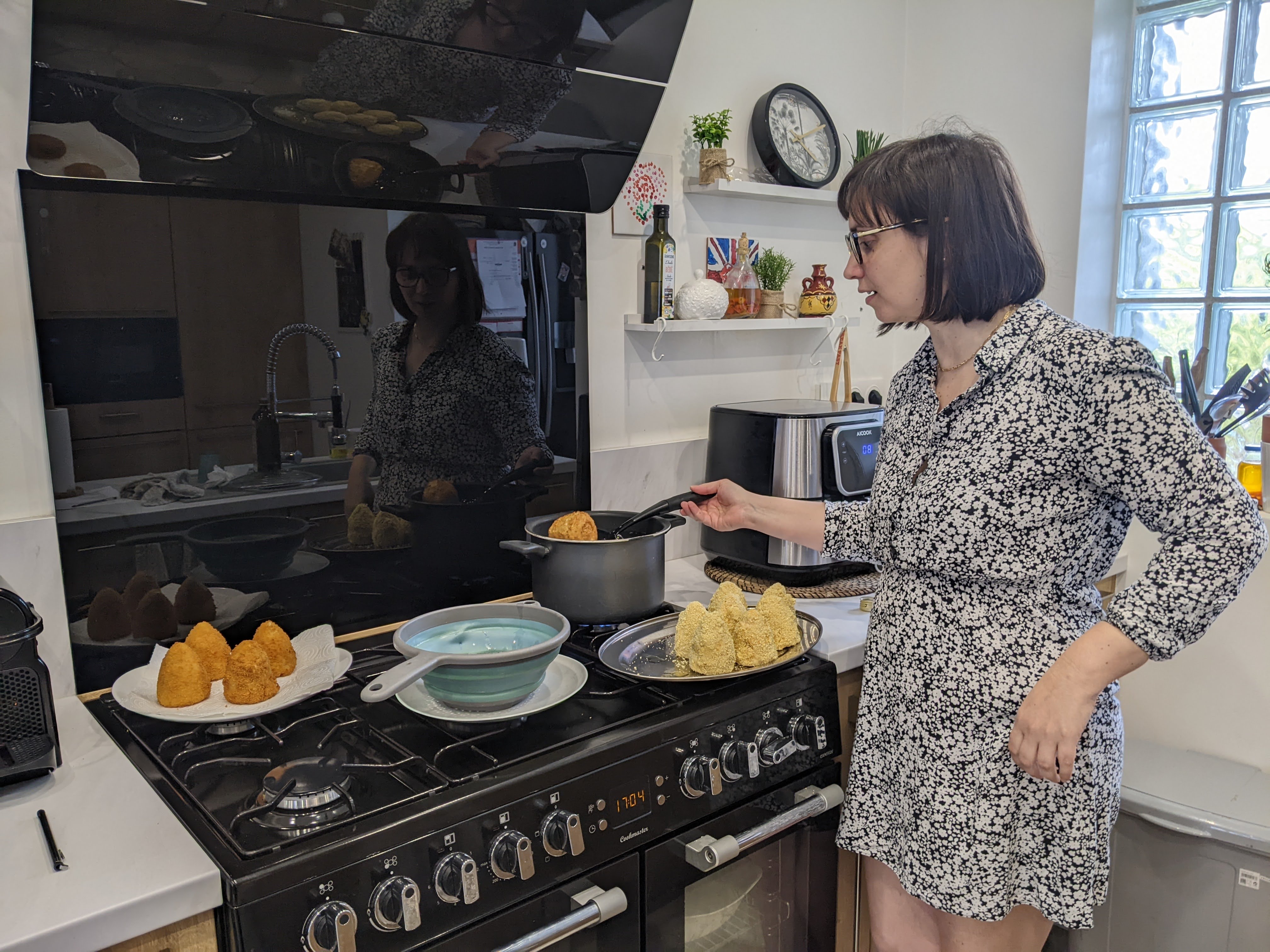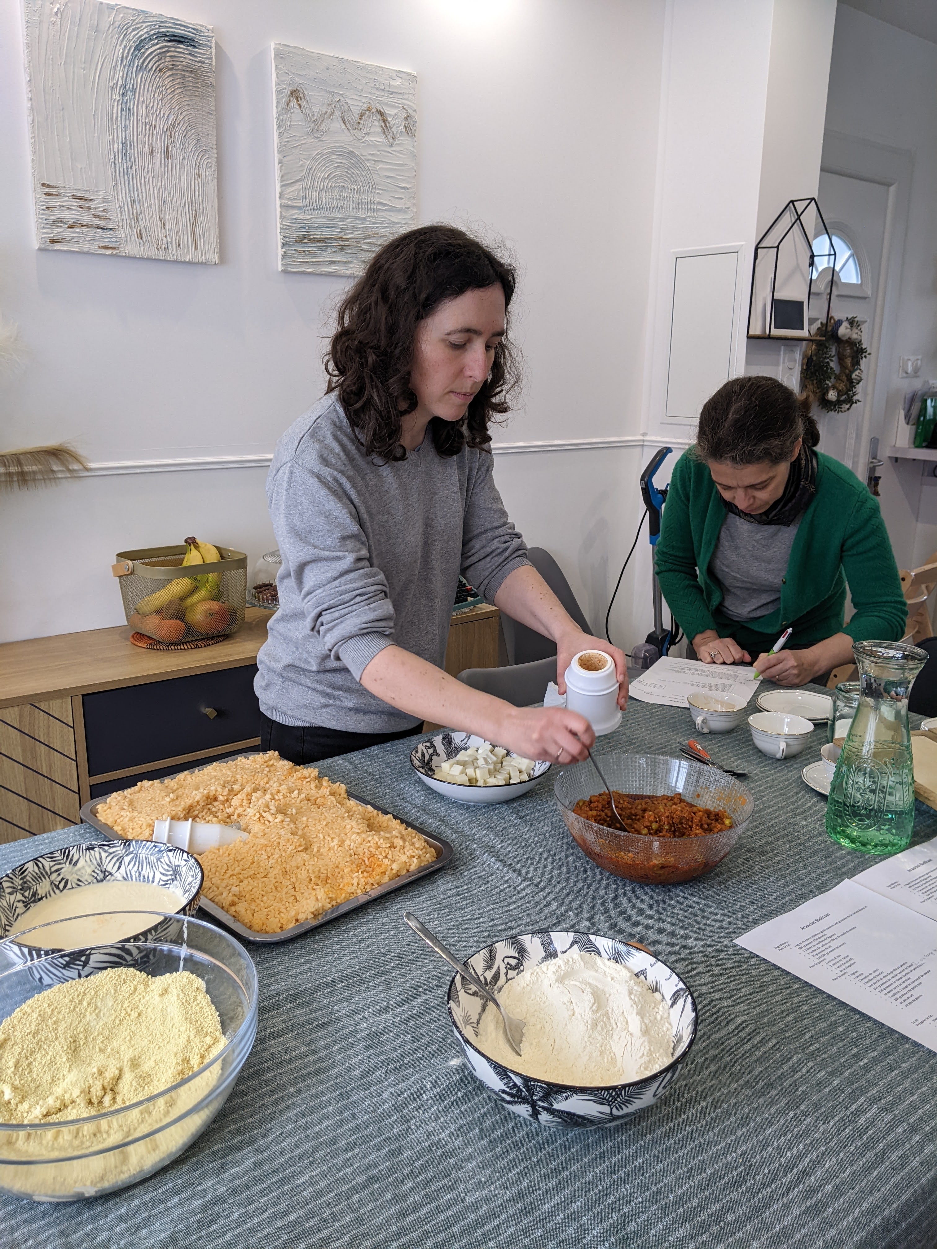 Diletta, catanaise doc, nous a appris à confectionner les arancini siciliens, boules de riz remplies de merveilles (sauce bolognaise, mozzarella et autres délices au choix) panées et frites, le street food sicilien par définition ! Mais attention, il ne faut pas confondre les arancinI allongés (de Catane) et les arancinE rondes (de Palerme) !