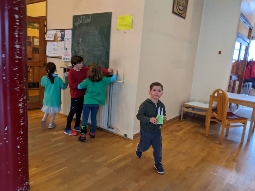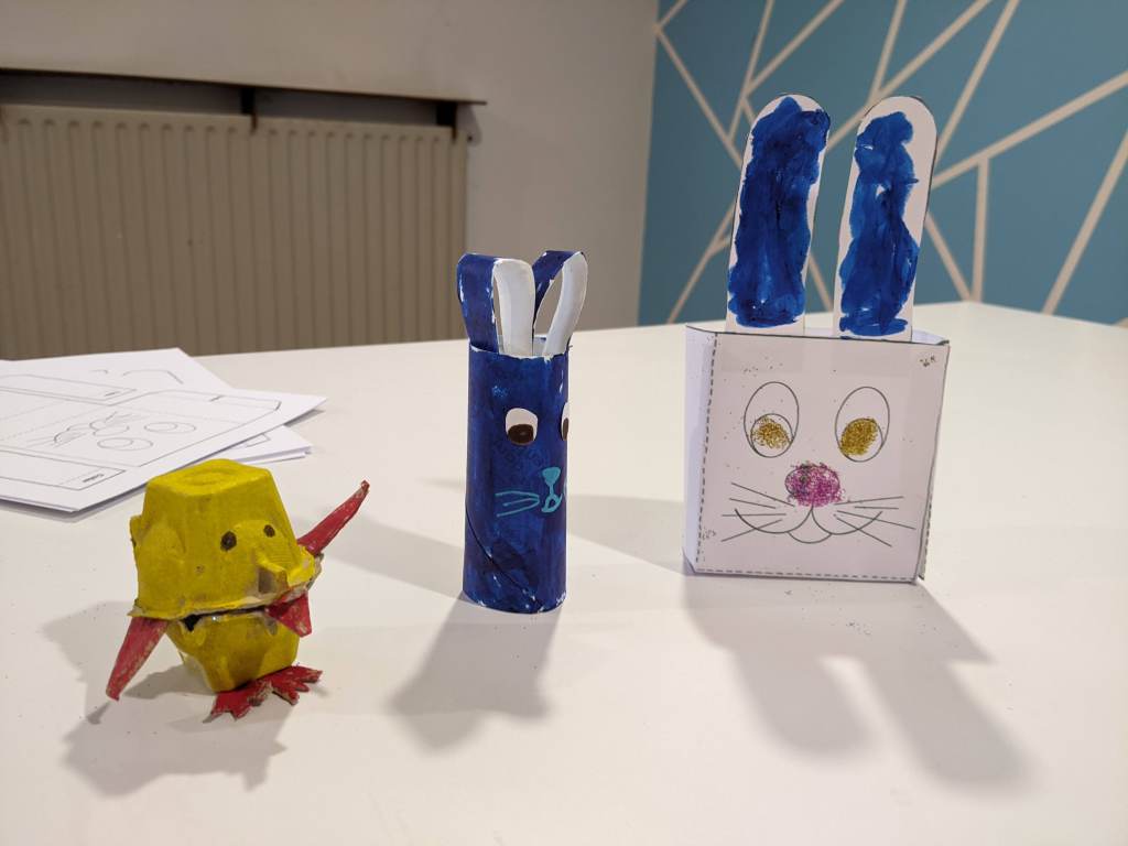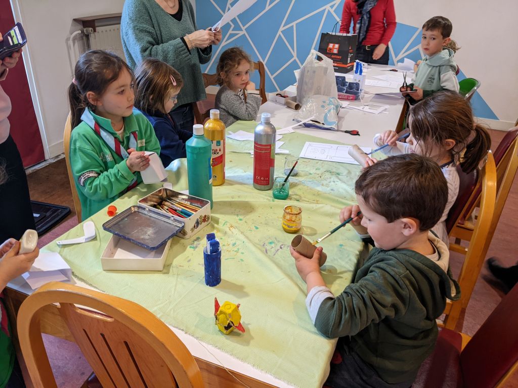 Une trentaine de participants entre adultes et enfants pour un après-midi et soirée familles à thème de Pâques, le samedi 25 mars 2023 au Foyer Soleil. Au menu : la création de poussins, lapins et boites-lapins en papier en matériel de récupération (boîtes à oeufs, rouleaux de papier toilette), une chasse aux oeufs pour les enfants de maternelle et élémentaire, un repas convivial et une soirée jeux de sociétés.