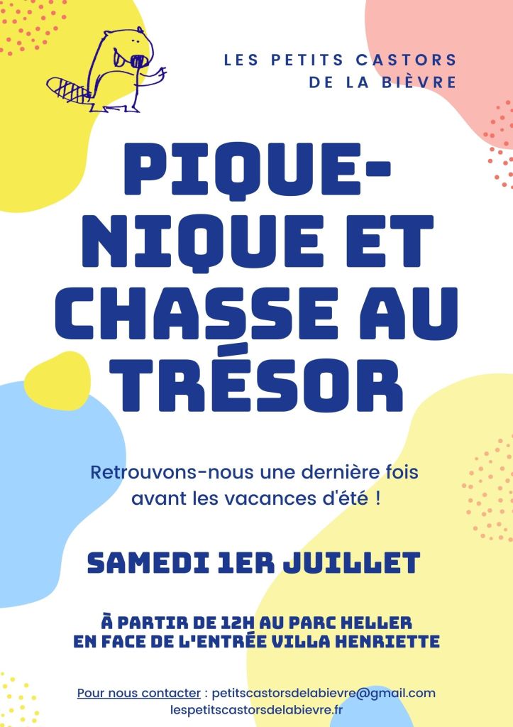 Retrouvons-nous pour clôturer la saison 2022/2023 le samedi 1er juillet à partir de 12h au Parc Heller. Pour l’occasion, nous partagerons un pique-nique et les enfants pourront faire un chasse au trésor dans le parc. Nous comptons sur la participation de chacun afin de faire de ce moment un instant partagé agréable. Pensez à amener vos assiettes, verres et couverts.