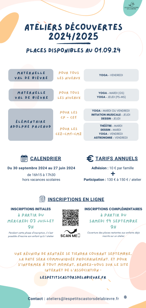 A partir du 14/09, les enfants déjà inscrits pourront s’inscrire à un deuxième atelier.