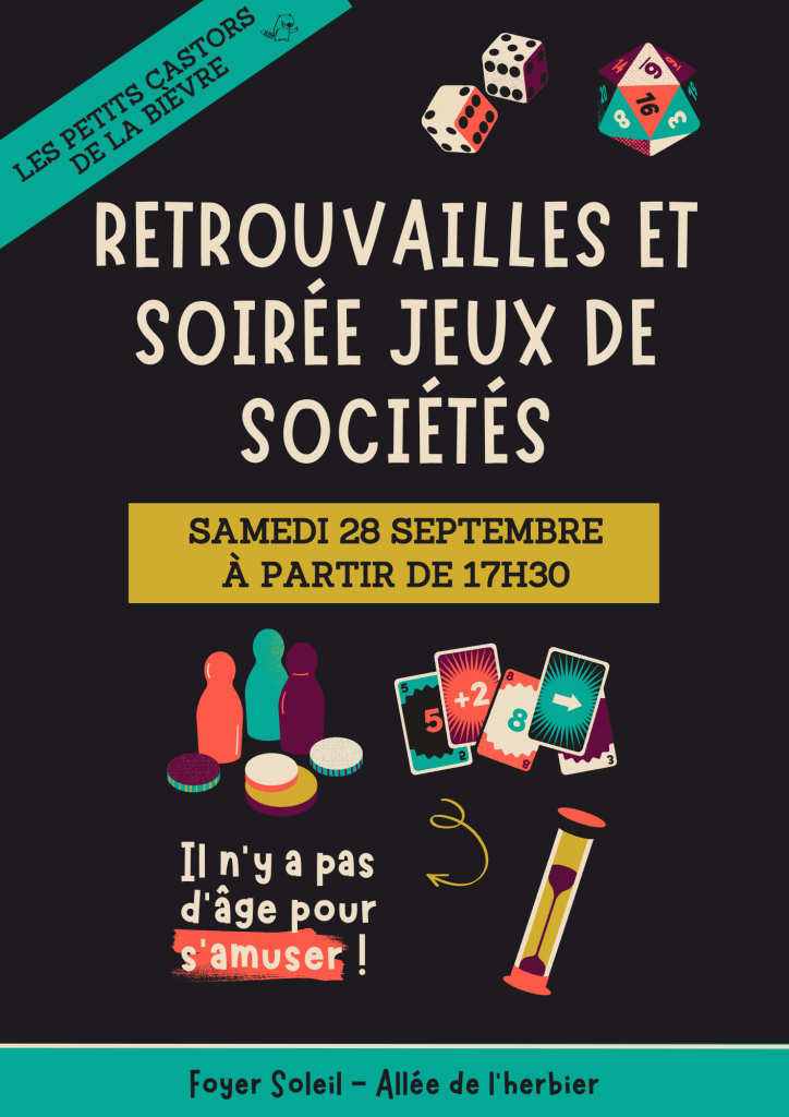 Retrouvons nous autour d’un repas partagé et d’une soirée jeux de société le samedi 28 septembre à partir de 17h30 au Foyer Soleil !