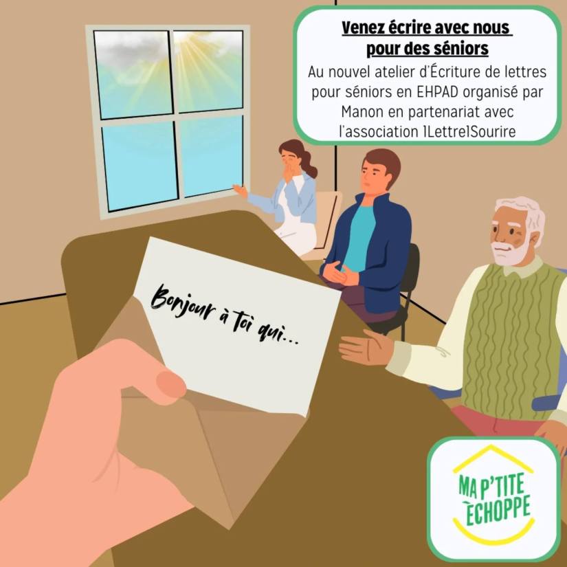 Ateliers d’écriture de lettres pour les séniors de l’Ehpad Korian Florian Carnot d’Antony, avec l’association 1Lettre1Sourire qui œuvre pour rompre l’isolement des personnes âgées.