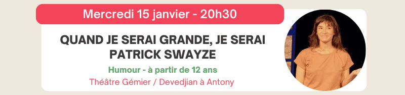 Activités quartier, Spectacles[Azimut] Quand je serai grande, je serai Patrick Swayze – 15/01 18 décembre 20244 octobre 2024 petitscastorsadmin Tarif unique à 9€.Pour plus de détails, cliquez sur l’image. Pour acheter vos places, c’est ici : Billetterie Similaire