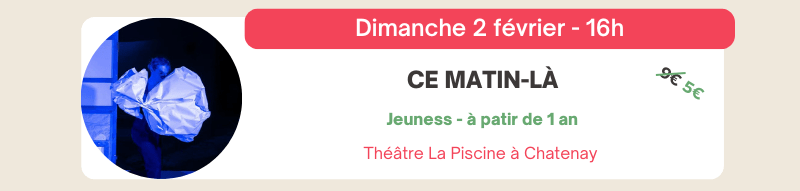 Activités quartier, Spectacles[Azimut] Ce matin-là – 02/02 5 janvier 20254 octobre 2024 petitscastorsadmin Tarif unique à 5€.Pour plus de détails, cliquez sur l’image. Pour acheter vos places, c’est ici : Billetterie Similaire