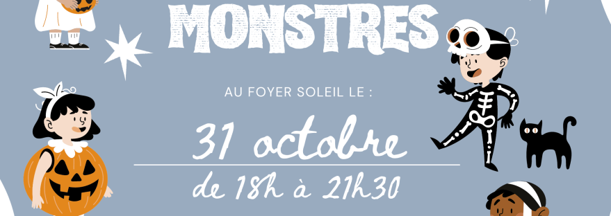 Rendez-vous au Foyer Soleil le 31 octobre 2024 de 18h à 21h30 environ ! Les enfants de tous les âges sont les bienvenus, accompagnés par au moins un adulte par famille. Venez déguisés (petits et grands), apportez une préparation salée ou sucrée à partager (c'est mieux si elle est à thème !) et votre bonne… Lire la suite Halloween 2024