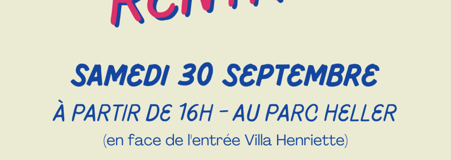 Que vous soyez déjà adhérents ou non, venez partager un goûter avec nous le samedi 30 septembre à partir de 16h00 au Parc Heller. Nous en profiterons pour planifier ensemble les premières activités quartier et les enfants pourront se lancer dans une chasse au trésor ! La campagne d'adhésion pour cette nouvelle saison est lancée… Lire la suite Retrouvons-nous !